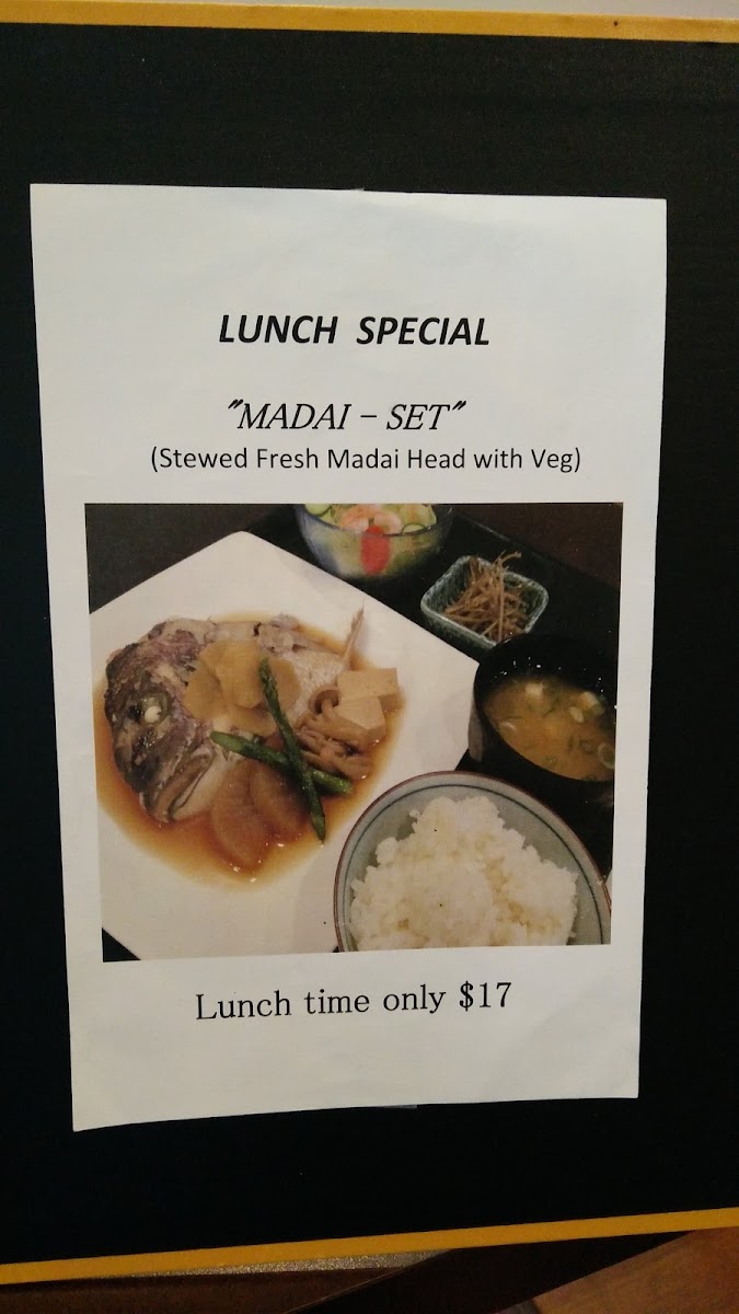 The menu is expansive, featuring meticulously crafted dishes that showcase the freshest ingredients. Highlights include the chef's choice sashimi, each piece a masterpiece of flavor, and their renowned lunch specials, like the stewed madai head set, known for its savory satisfaction. Diners rave about the crispy tempura and the delicately prepared chirashi set, which exemplify the restaurant's commitment to quality.